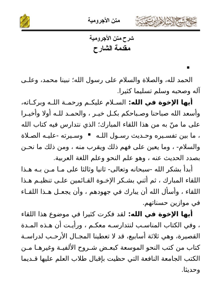 Sharh Of Ajuromeeyah By Shaykh Khaalid Al Faadhil