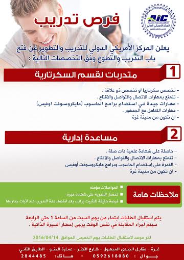 فرص تدريب مدفوعة سكرتاريا مساعدة ادارية المركز الأمريكي الدولي غزة دليل وظائف فرص منح عطاءات سير ذاتية