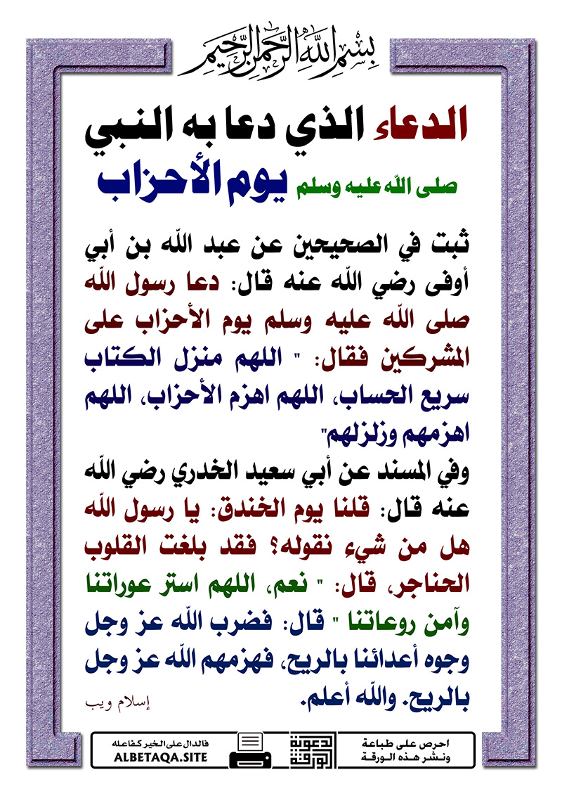 الدعاء الذي دعا به رسول الله يوم الأحزاب نور الهدي القران