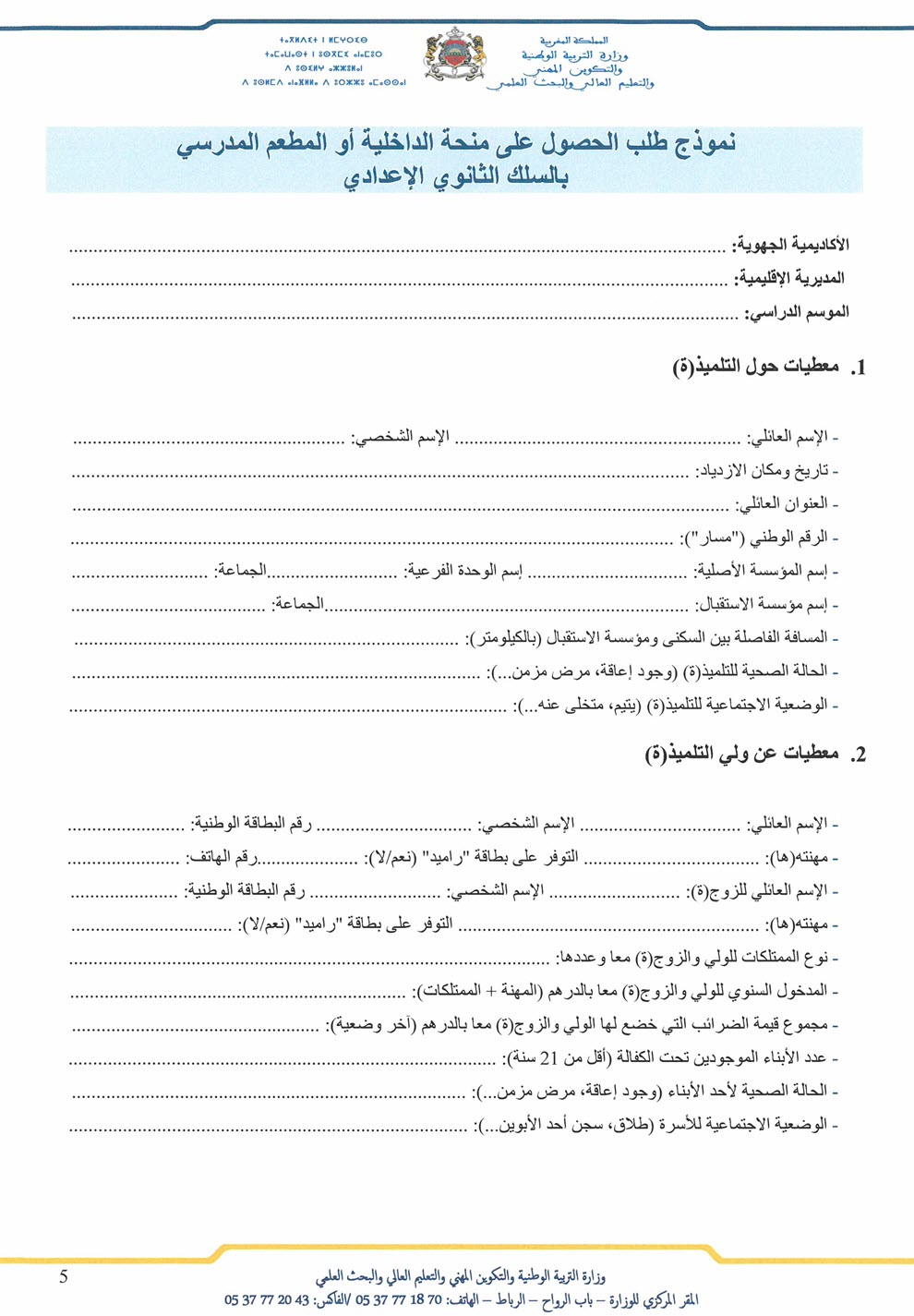 طلب منح الداخليات والمطاعم بسلك الاعدادي مسار Massar 2020